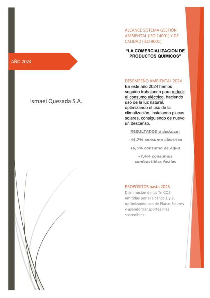 El camino hacia la excelencia iniciado por Ismael Quesada S.A. con sus sistemas de gestión de calidad y medio ambiente tiene su continuidad en una política de responsabilidad social que se implementa con transparencia y está abierta a la participación de las partes interesadas.